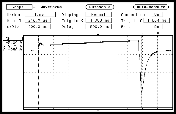 Der Ruhepegel des Signals (außerhalb der Zündungen) sollte etwa bei 0V